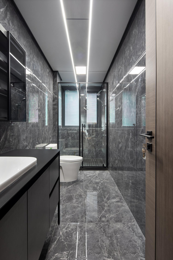 洗浴区小窗既保证了通风也将光线引入,由铝百叶空间穿透而入的光影效果,让颜值功能双双在线。