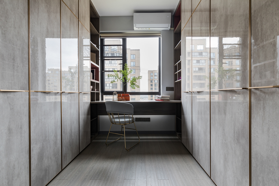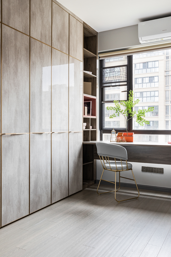 办公区两边设计为储物区,办公桌一面光线充足,将自然的光线和外部的景观释放出来,轻奢典雅感油然而生。
