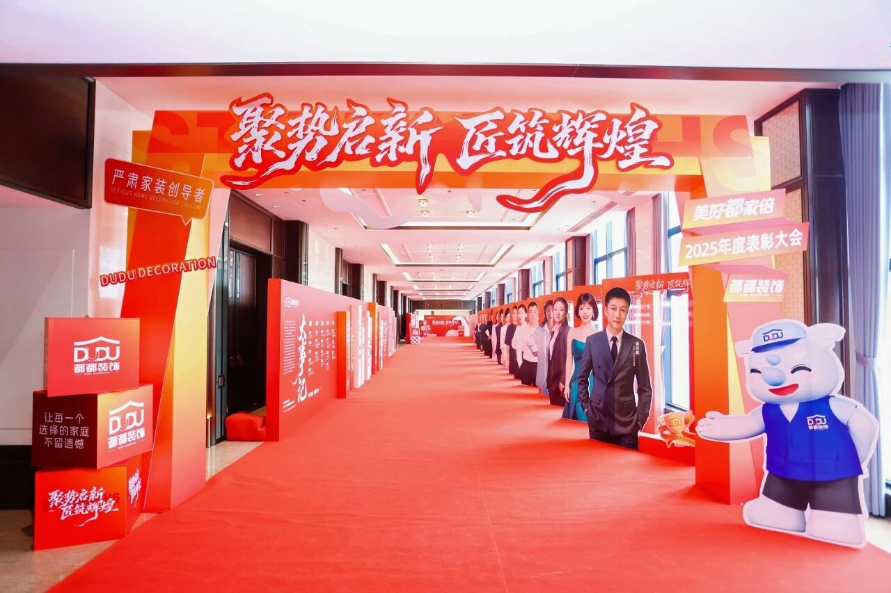 春来启新程 策马再出发 在都都装饰集团的宏阔版图上 2025的荣耀犹在闪耀 2026的崭新篇章阔然铺展 乘春风浩荡 惜寸金光阴 都都全体家人共聚一堂 于2026年3月5日隆重召开 「聚势启新 匠筑辉煌」 都都装饰2025年度表彰大会 暨2026「美好都加倍」全员启动大会