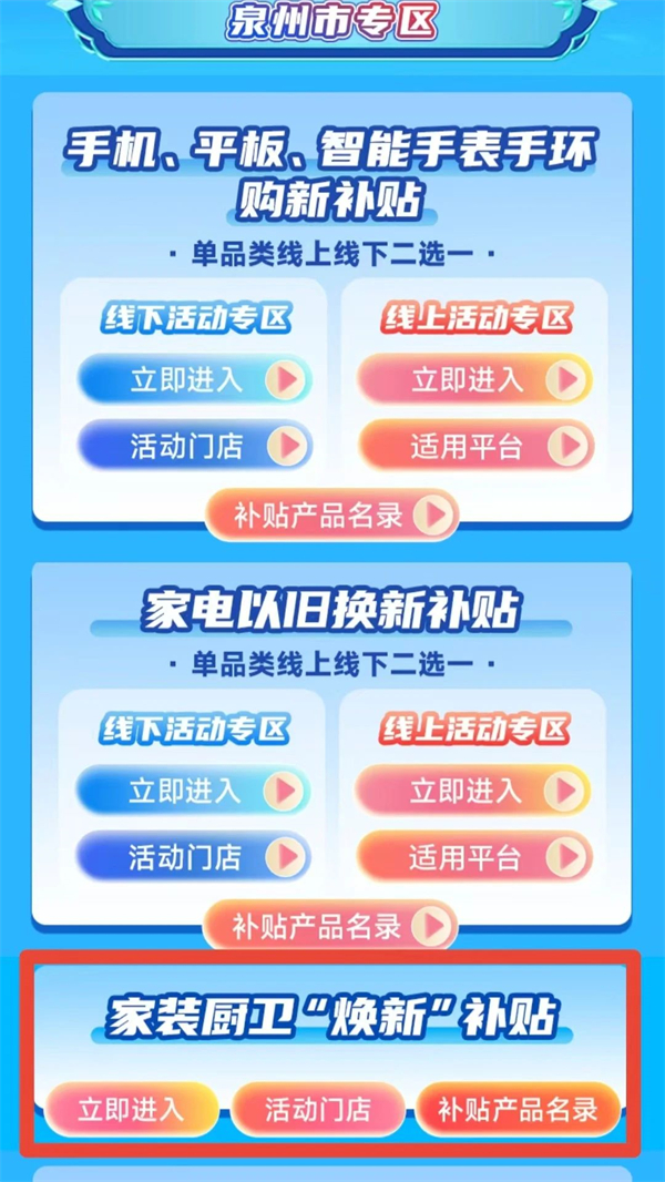 装修材料类、卫生洁具类、家具照明类、智能家居类补贴15%,购买1级能效或水效标准的产品补贴20%。