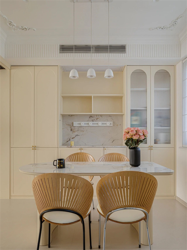 它主张减少复杂吊顶、雕花石膏线、定制墙裙等装饰性结构,转而用干净的墙面、简洁的线条构建空间基底。