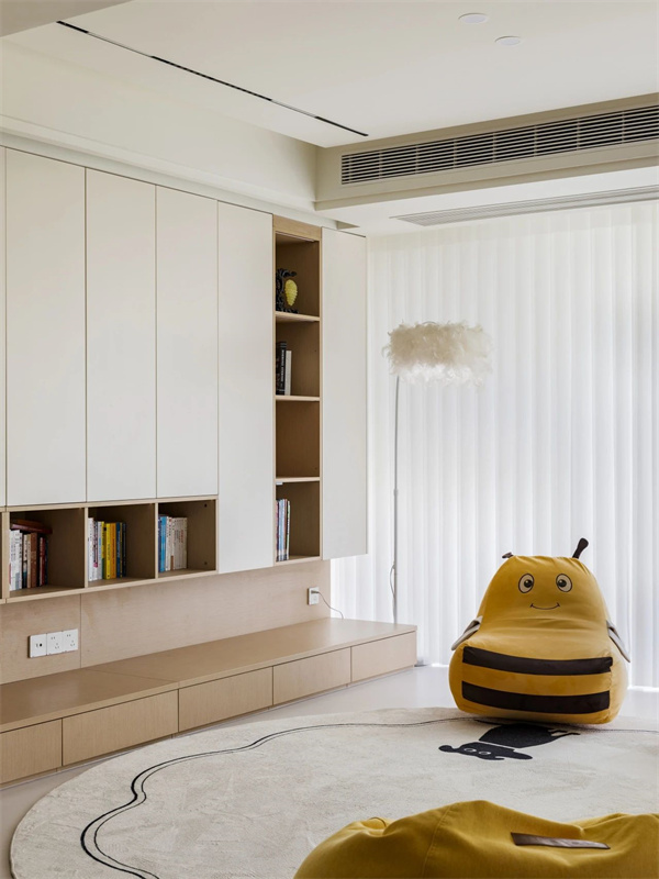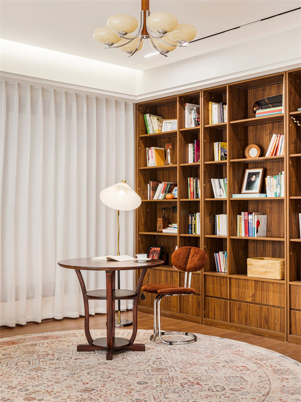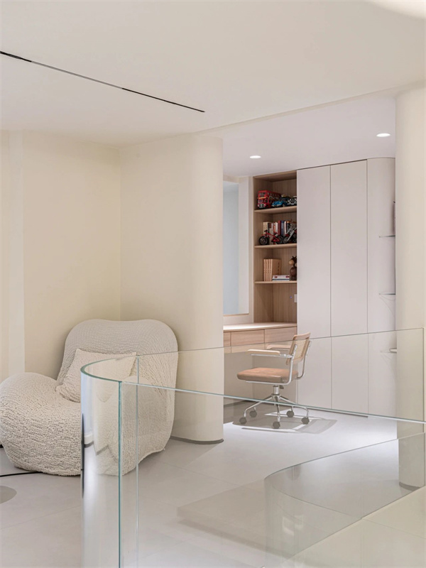 书房摆脱了冷冽的严肃感,转而增加了属于家的舒适和温馨。