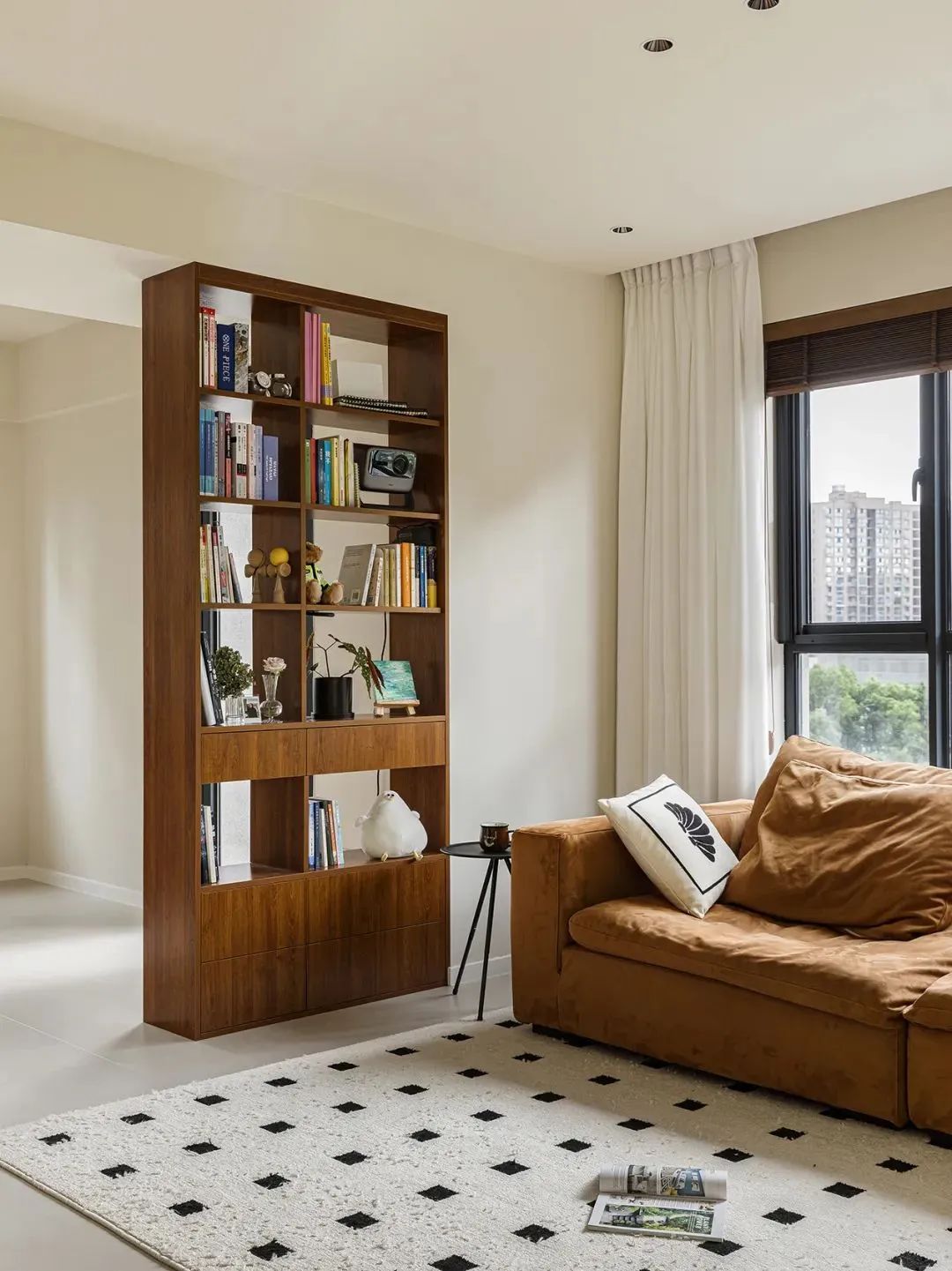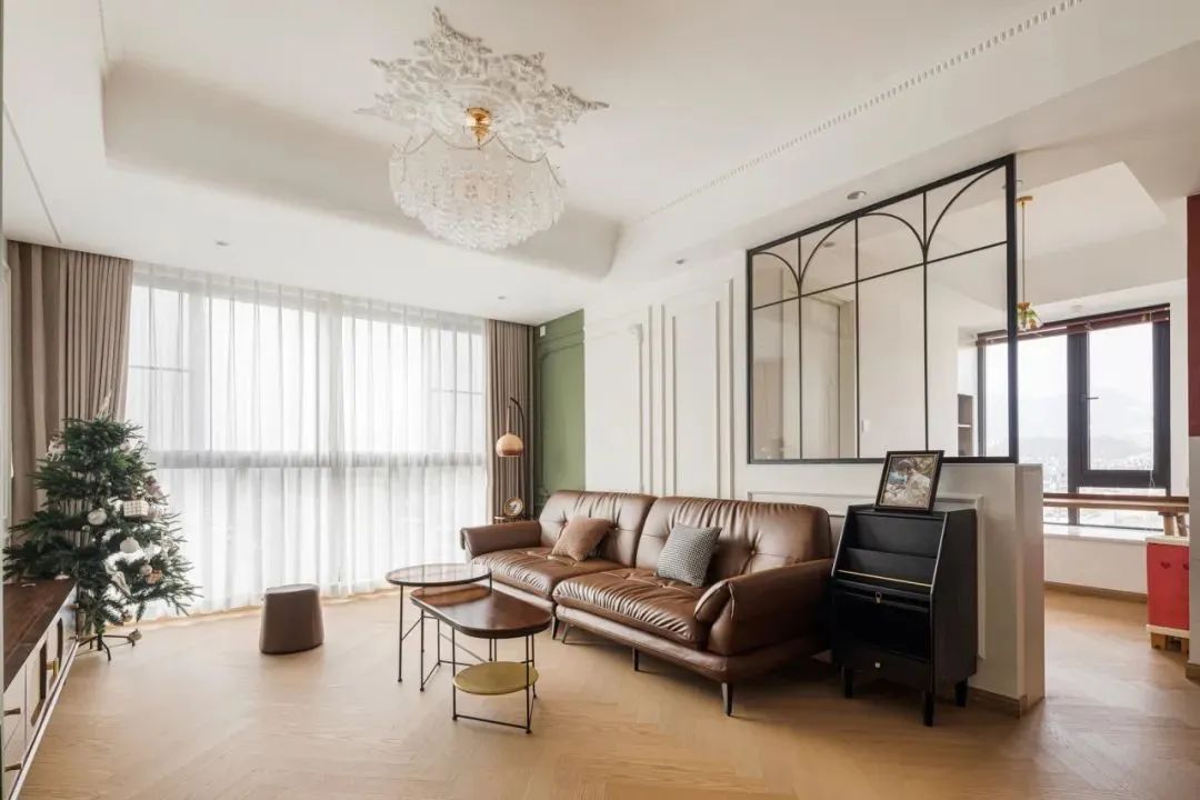 像是书房与客厅相邻,可以直接做半墙,让书房也能保留一部分客厅的采光,同时增加家庭互动。