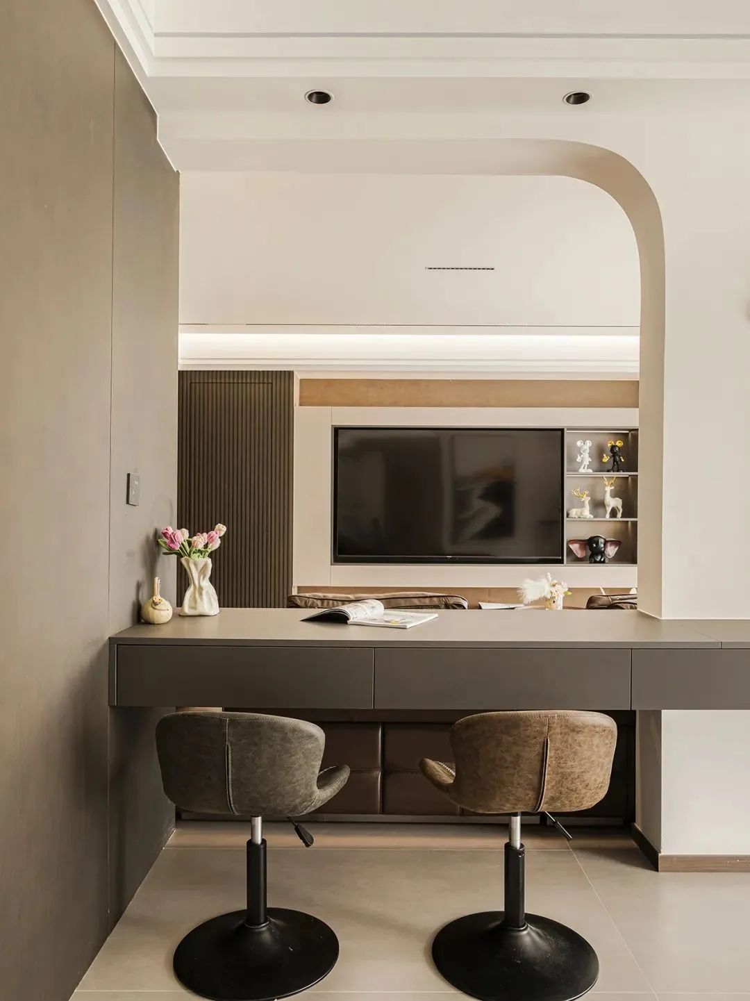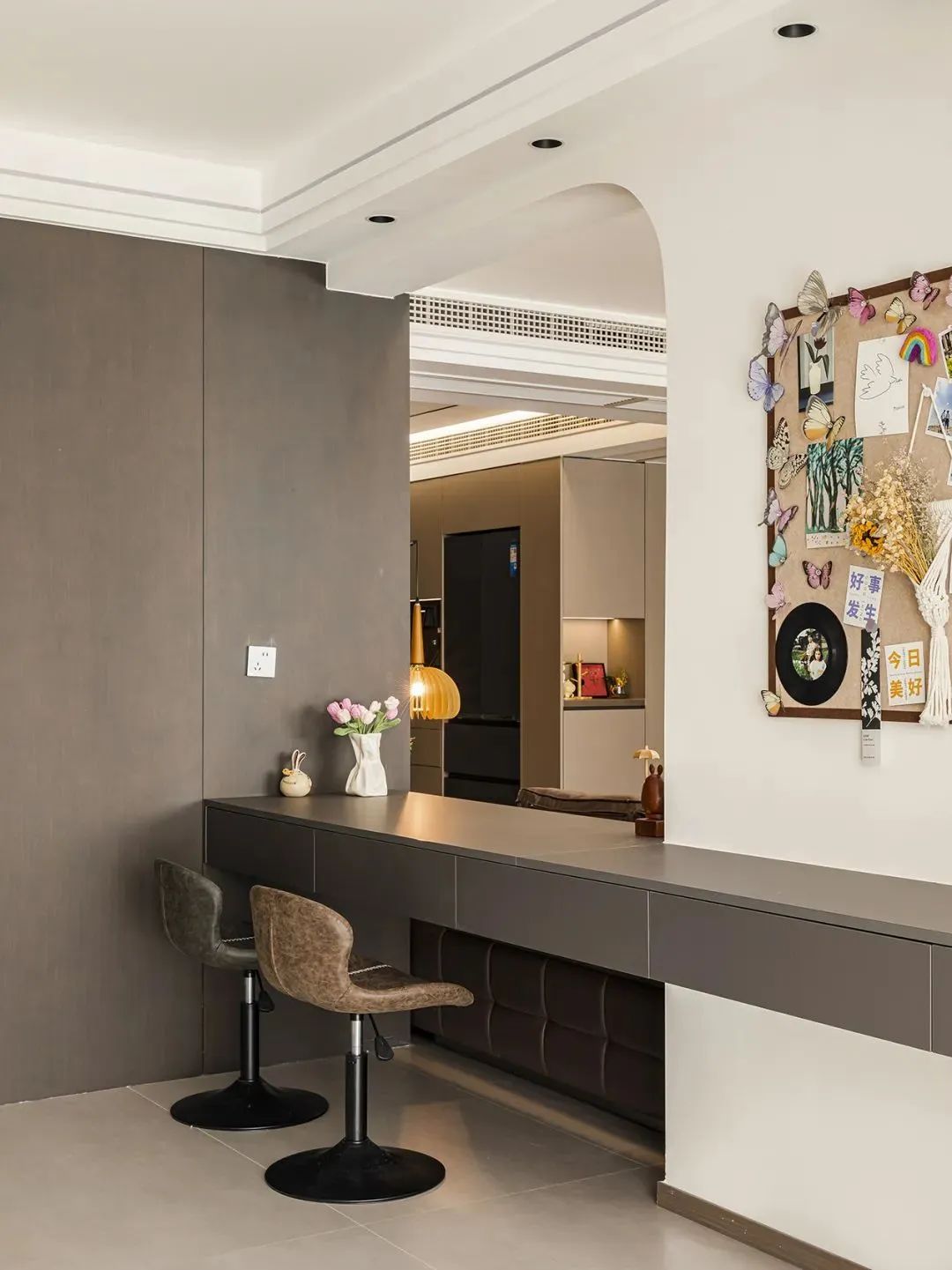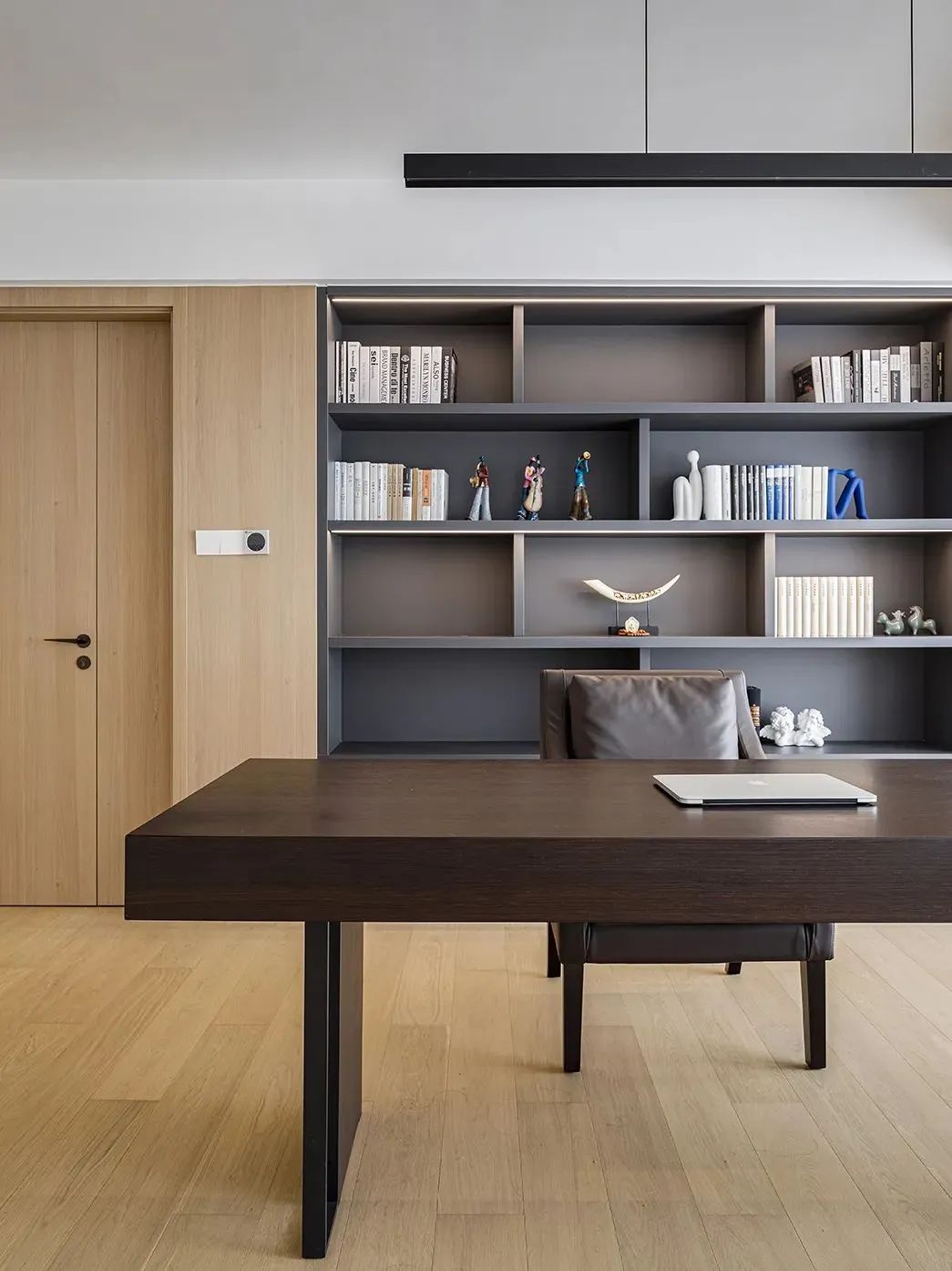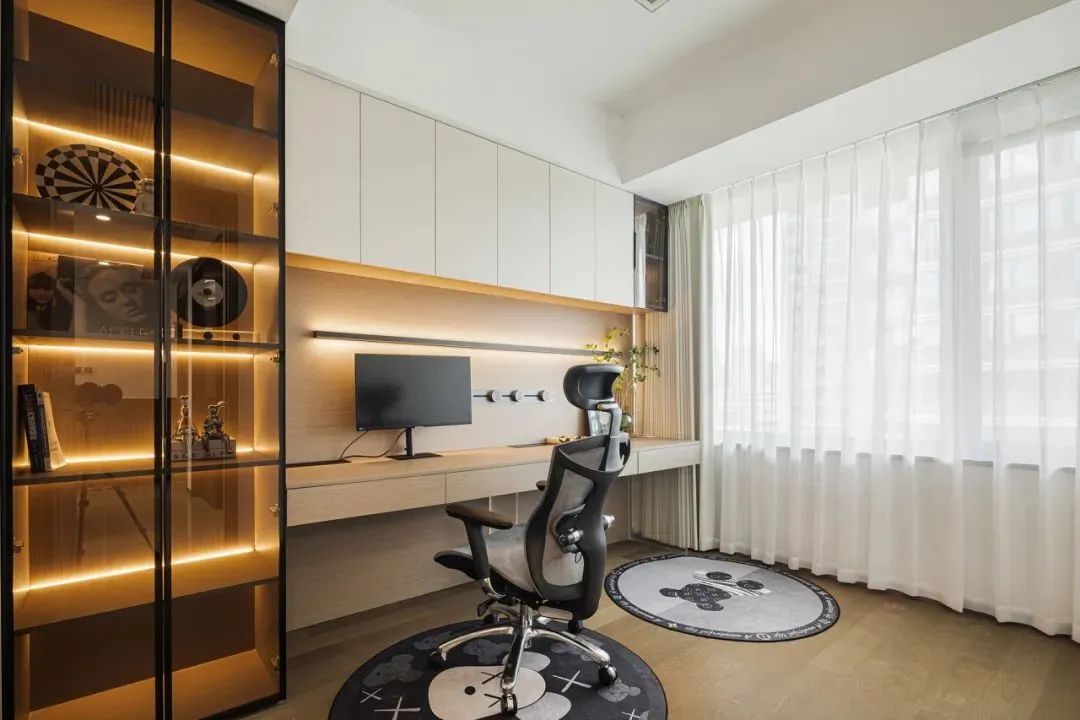 书房做半开式,很大程度上是想要在保留一定私密性的基础上,保留良好的空间感和采光效果。