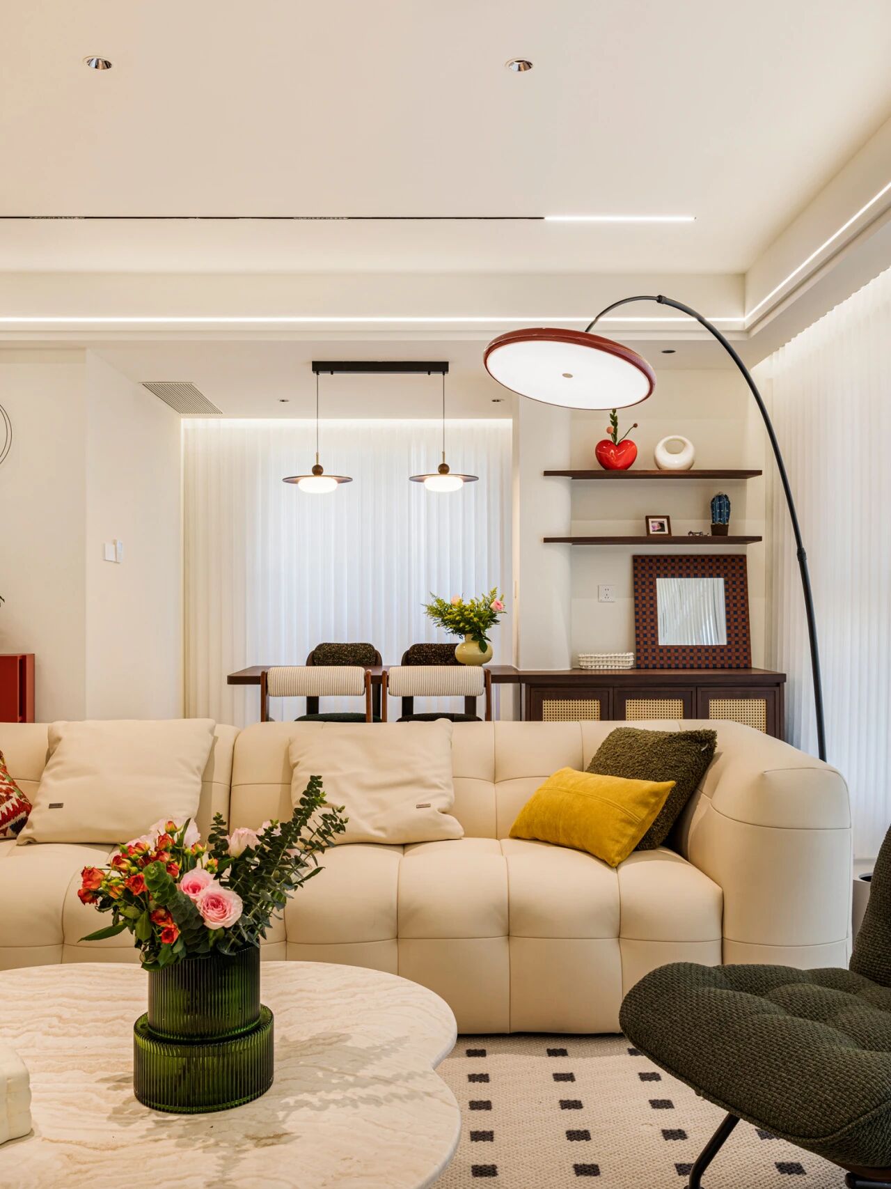 作为连接客厅和厨房的“通道”,一些杂物放在餐边柜收纳不显乱又方便拿取。