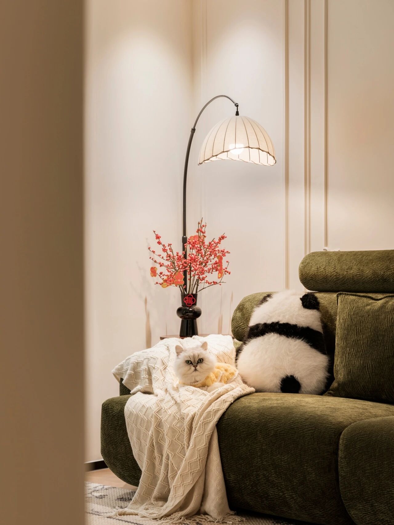 客厅角落 动静皆宜的陪伴区 客厅是人与宠物互动最频繁的区域,选择一处靠墙但不偏僻的角落,用来安置狗窝或猫爬架再合适不过。 这个位置既能让宠物拥有属于自己的领地感,又不至于脱离家庭生活的中心,它们可以安静地窝着,也能随时“监视”到人类动向,对宠物来说非常友好。