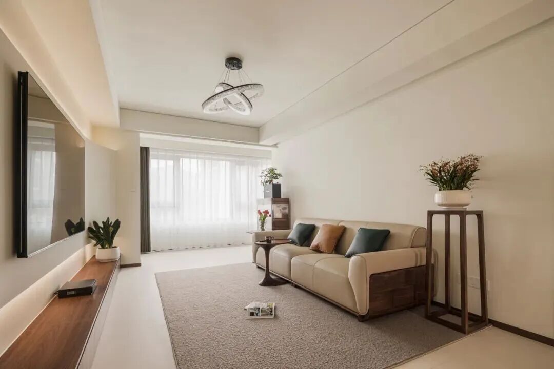 如果自然光不够,可以适当增加室内灯光,建议舍弃笨重的大吊灯,选择无主灯设计,让光线更均匀。